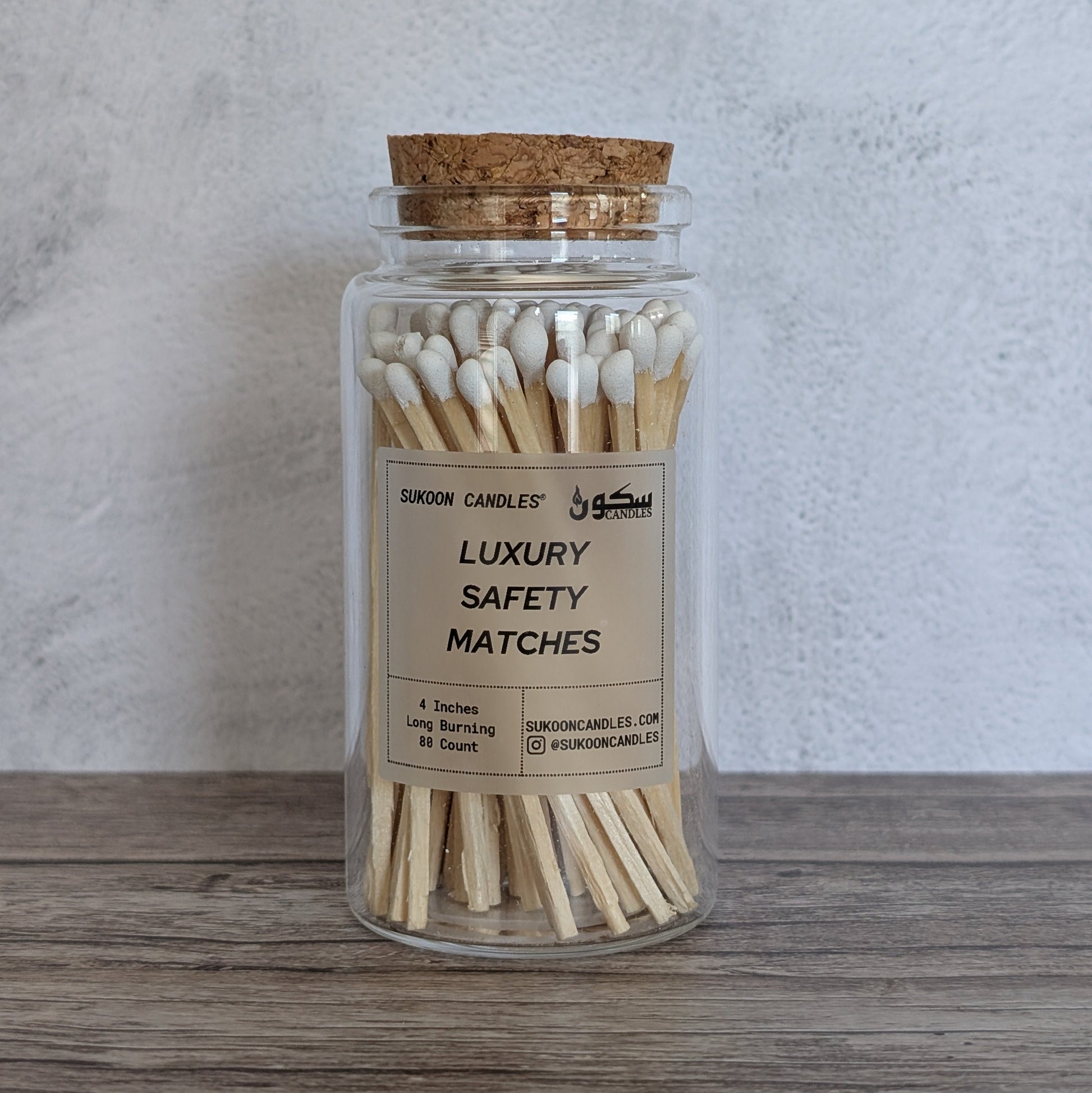 At Sukoon Candles, we believe true peace comes from thoughtful details. That's why we've chosen these premium matches, housed in a sleek, minimalist glass jar that effortlessly blends with any decor. Beyond their elegant appearance, these matches offer both convenience and enhanced safety.